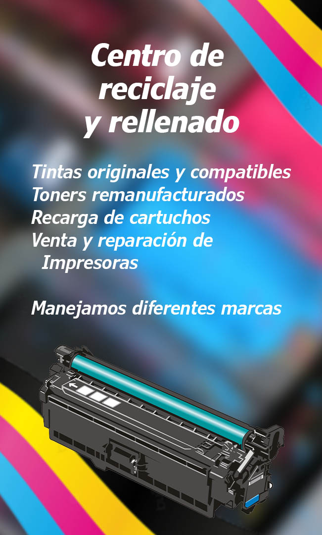 Reciclado y re manufactura de consumibles de tinta y tóner: Tenemos líneas de producción que aseguran un ensamble de calidad en los productos reciclados.