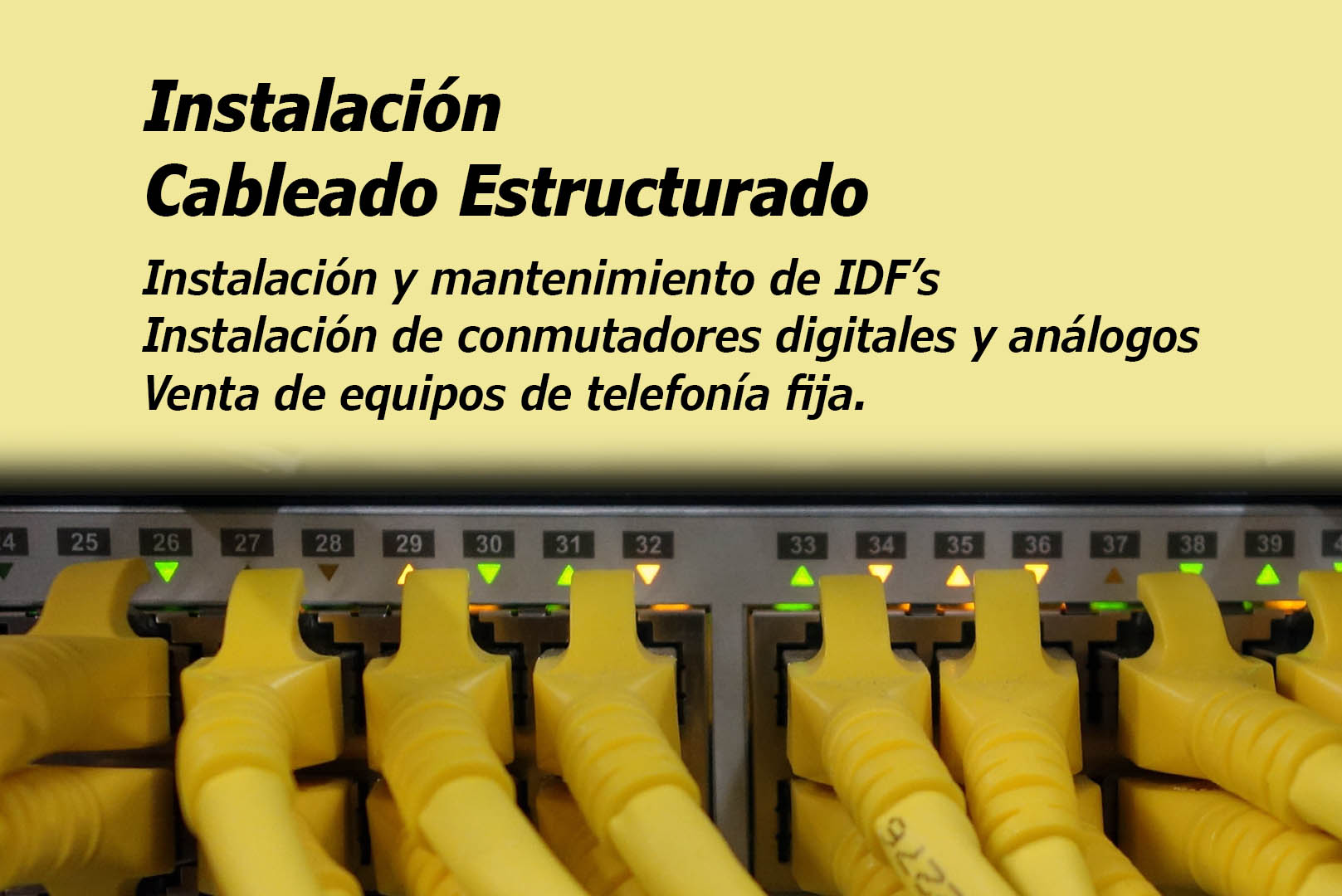 Instalaciones profesionales: Atendemos instalaciones de Redes de Voz, Datos, Video vigilancia, Control de acceso, Electricidad de media y baja tensión comercial y residencial. Alarmas, Interfones.